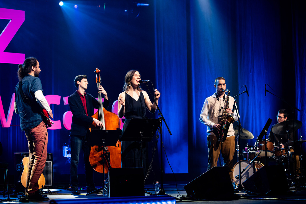 Bettika Bakos is a singer, composer, student of the Jazz Department of the Franz Liszt Music Academy. Bettika works with improvisation, free music, theater music, mantra singing, teaches and holds workshops. Her ensemble, the Bettika Quintet - the winner of the 2021 Müpa Jazz Showcase jury grand prize - employs elements of jazz, free improvisation, world music and contemporary poetry. The Quintet's upcoming album Víz ('Water'), which will be released in the beginning of 2022, features mainly their own compositions, including a number of poetry-based music with jazz-poetry or spoken word elements, the rhythm and lyrics of which are Hungarian poets (Dezső Tandori, Ede Tarbay, Ágnes Nemes-Nagy). The program also includes reworkings of pieces that can be classified as world music, mainly Hungarian and gypsy folk music melodies, which bring exciting colors to the concert program with their complex rhythms and drama. And the own pieces without text give room for free improvisation and playing with musical frames.