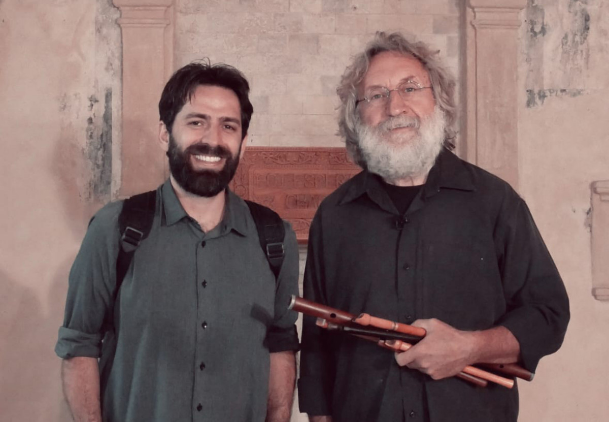 Miquèu Montanaro, composer, flutist and accordionist, sets out on a unique journey from Provance through the Mediterranean to the farthest reaches of the world, integrating elements of distant musics into his own pieces. He often collaborates with musicians from the younger generation to enrich the musical dialogue through the exchange of ideas based on different world and life experiences. His partner in the Amazonas Duo is the Brazilian João Pedro Teixeira, a student of Hermeto Pascoal. Their free-spirited, joyful and virtuosic ensemble arrives in Budapest immediately after a three-week tour in Brazil. In the second half of the evening, the music of the "Open Trio" will be framed by flutes and drums, which the musicians will choose according to the timbres they dream up for the concert, with the violin floating between them, following individual ideas.